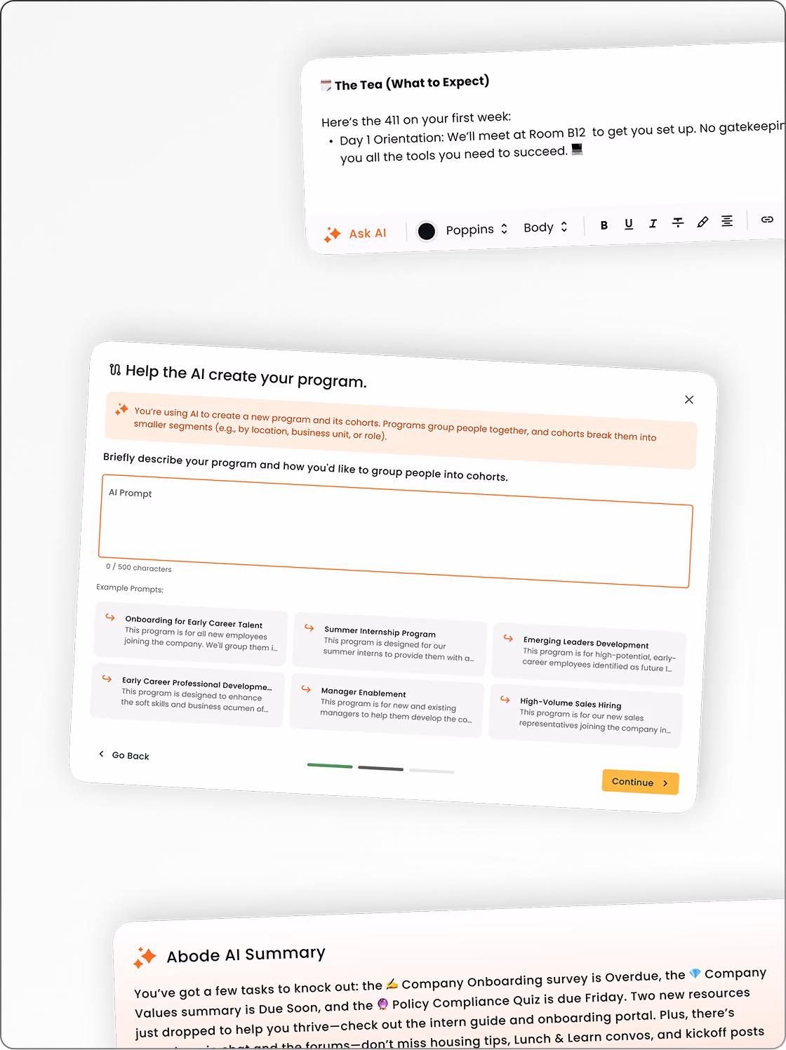 How do you embed AI-powered creation, notifications, and automation across dozens of HR features without increasing cognitive load?